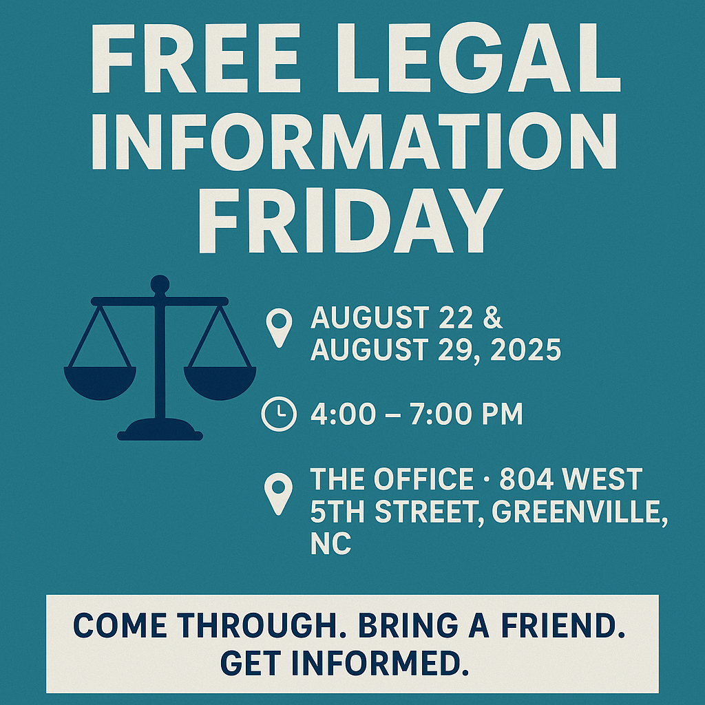 Emancipate NC’s Dedan Waciuri and Attorney Dillon Sharpe are back in Greenville for Free Legal Information Friday—a community-centered event where you can get practical legal knowledge, resources, and guidance to help keep you safe, informed, and free.