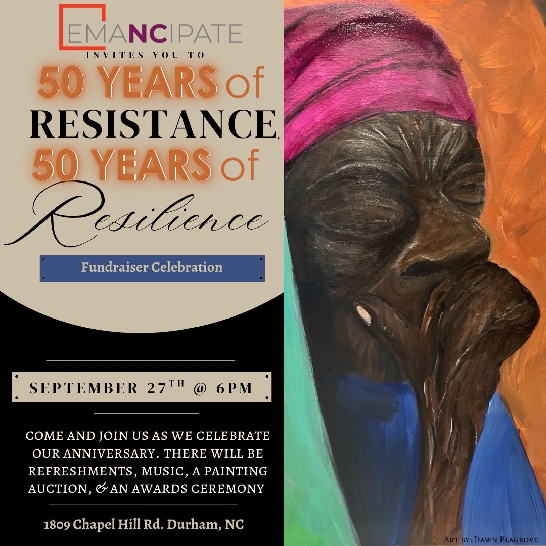 We can’t wait to see you on September 27th at 6 p.m. at 1809 Chapel Hill Rd, Durham, NC, for our 50 Years of Resistance, 50 Years of Resilience celebration.